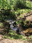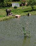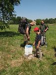 Dilema na hrázi protrženého rybníku. Mezníci jsou tu umístěni vůči mapě divně a budeme muset v terénu vyzkoumat, kam ta hranice vlastně vede. Také se jedná o poslední potok tekoucí "jen" z lesa. Je sice ještě hodně brzo, ale nakonec zvítězí tu zůstat a udělat si pohodový večer.
