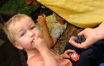 Matesovo přání bylo spaní s výhledem na noční oblohu. Nedošli jsme až na lučiny za lesem, páč jsme natrefili na pěknou paseku, kde jsme to zalehli a s usínámím počítali hvězdy. Táta spal venku před stanem a chrápáním odháněl divočáky. A máma si šla ráno odskočit na...