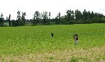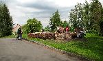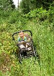 Cesty nejsou nej, dlouho tu nic nejelo. Každopádně kočárek má dobrou prostupnost terénem a Kubajs si zrovna mne ruce po průjezdu kopřivovou houštinou. Těžko vysvětlovat, že kopřivy nemá trhat.
