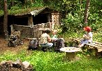 V lomu potkaná hašišbouda "Posezení u bezednýho sudu", kde jsme dali sváču a pak krkolomný výlez nahoru nad lom.
