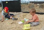 Ve Větrovech v ZOO. Pískoviště hnedle vedle Surikat vlnkovaných je nejlepší atrakce. Jde jen o to kdo koho v pískovišti napodobuje.