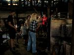 Slečna průvodkyně vysvětluje práci u pece tak živě, že s trochou fantazie si lze představit žár pece, tavené sklo a práci s ním.