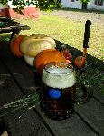 Zátiší s pivním džbánkem na stolku pod sklárenským kaštanem