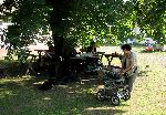 Vystoupili jsme v zastávce Chřenovice-Podhradí, kde už nás čekal Skřítek, Hanka a Fara.
