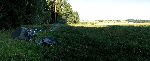 Ráno na louce na kraji lesa s noční návštěvou divočáků. Děti ráno nezvykle chrněj dýl než my...