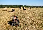 Zkratkou přes pole s balíky slámy