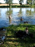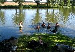 Vytoužené koupáníčko se naskytlo v rybníku v Řeplicích. Ale snad nejvíce si to užila Fara, páč měla celou smečku ve vodním živlu.
