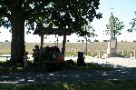 Novodobá boží muka před Zbraslavicema. Na ujíždějící vlak v dáli nemělo cenu spěchat, tudíž siesta to jistí. Ale jelikož na nedalekém polním letišti přistálo letadlo bylo záhodno se s klukama k němu vypravit.
