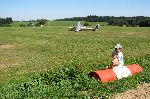 Konečně přijíždí letadlo pro roztažení kluzáku. Doufejme, že si chlopíci stav hejblátek v kluzáku ještě překontrolovali.