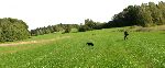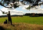 Nad Horním Meziříčkem nás večer z kraje lesa vyhnali myslivci číhající na divočáky, tak jsme se vrátili kus zpět k seníku kde prej střílet nebudou.
