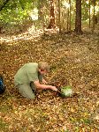 Skřítek očisťuje mezník severně od Suchdolského vrchu