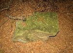 Kámen s křížkem na zlomu hranice na Sedlickém kopci. Pak jsme dlouhou dobu nepotkali ani mezník ani hraniční strouhu.
