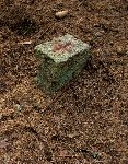 A červeně natřenými kolíky. Kámen s vytesaným číslem 9.