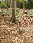 Pod Bůkovcem se hranice zlomila zpět dolů do údolí. Nalezený první mezník.