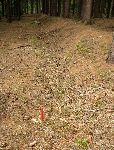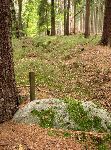 Hraniční strouha a kámen s křížkem západním směrem k vrchu Šibeník