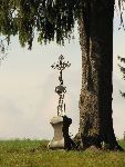 Malý mezník s křížkem a číslem 57 při cestě do kopce Bůkovice