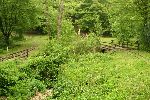 Současný konec kolejí Nagybőrzsőnské lesní železnice