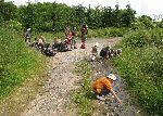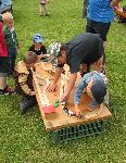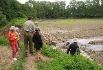 Bedla opravuje kolečko na kočárku a děti stavějí přehrady