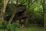 U Lechova kamene, za kterým se vine val Kouřimského hradiště.