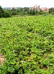 Výhledy na Kouřim nedaleko Lechova kamene, který je obklopen jahodovými plantážemi.