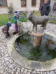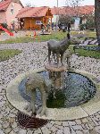 Eliášova fontánka jakožto Eliášův pramen. Děti ještě neobjevili, že se sousoší dá rozpohybovat.