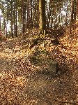 Stará a nová cesta s mezníkem na hranicích Bynoveckého panství a panstvím Česká Kamenice.