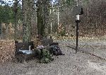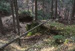 Zbytky základů lovecké chaty Karlshaus a pomníček