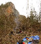 Lom Soví ráj s osadou. Bez lana to, ale dolů nepůjde.