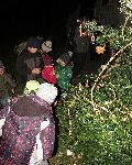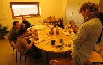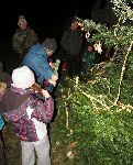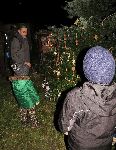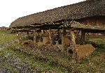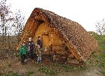 Venku v Archeoparku. Průzkum proutěné kukaně potaženou kůžema.