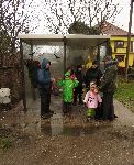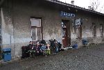 V nádražce v Jaroměři. Jíja trefila desítku na terči připevněném na batůžku.
