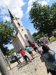 Na srazu u kostela ve vísce Sedlo. A brečící Kubík si rozpomněl, že mu Matýsek bude chybět.