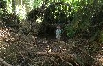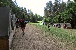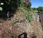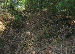 Hlavní těleso Lásenické tvrze se skoro rozvezeným příkopem a valem. A Kubík začarovává kopřivy, aby nepálily.