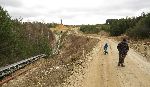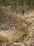 Cestu podél potoka nám zkřížila "hráz" a vyškrábali jsme se hore. Vypadá, že náš potůček nějakou rourou skrz (na fotce zleva doprava - od západu k východu) pod tímto zasypaným oudolíčkem prochází.