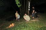 Nakonec i ohníme. Plachtu jsme napnuli mezi odpadkový koš a ceduli. Vyplatilo se to, v noci přišla slušná buřina.