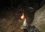 Jako vojenské tábořiště jsem očekával spíš valy, něco z třicetileté války. Ale toto jsou betonové schůdky a základy budov možná související s opevněním. Ale to by kluci na "http://mapa.opevneni.cz/" měli určitě podchycený.