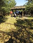 Pauza kdesi na odpočívadle. Ono prej měl Zbynďa něco menšího co dostalo přezdívku "Kadibouda" a přezdívka se na toto jen přenesla. Osobně mi to na cesty přijde jako zbytečný přepych, ale kdo ví, třeba jednou. Každopádně co jsem zatím vyzkoumal je tu všechno precizně promyšleno. Prostě milijón věcí se dá nějak sklopit, zaaretovat, upevnit, aby to fungovalo při cestě, zastávkách, zakempování. Prostě nad tím při návrhu i výrobě někdo přemejšlel. A to mne fascinuje, to technické řešení tisíce detailů.