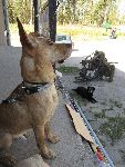 Brut sleduje páníčka lezoucího na rozhlednu....
