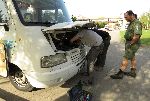 Opraveno. Tak stopovat domů nemusíme ...a na to se s Pinďou jako neřidiči napijeme.