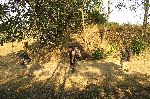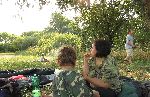 Večerní ohnění a vaření na pískové cestě. Než nás vyhmátli hlídači z pískovny. Asi se báli, že jim sebereme bagr.