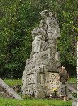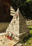 ...a památníkem ve tvaru pyramidy s nápisem v cyrilici "Synům Ruska “.