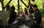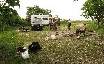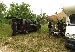 Skupina Áááá - Kadibouda, když jsme přifrčeli jako skupina Bééé - Sardinky, byla už většina rouztroušená po okolí a v limbu. Se Šnečkem jsme si tak ve tři ráno ustlali hnedle za autem. Ostatní, že jdou spát více do lesa. Se svítáním projel kolem náklaďák pro dřevo ...jen jsem doufal, že to dřevo nebude to, u kterýho spíme a je zaparkované auto. Bylo..... zmátořil jsem všechny své komunikační a pohybové schopnosti, ponechal rozespalého a zmateného Šnečka ve spacáku a šel hulákat do lesa, kde spí řidič s klíčkama od auta.