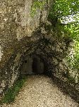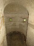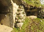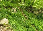 Zbytky podpůrného zdiva v zákrutě cesty stoupající k pevnosti Hermann.