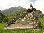 Hřbitov Log pod Mangartom. Na hřbitově je ve čtyřech terasách pohřbeno více než 800 rakousko-uherských vojáků.