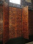 Jména padlých na dřevěných deskách mající evokovat stránky knihy. Na levé desce jsou jména našich rodáků....