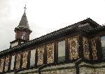 Venkovní výzdoba kostelíka na Javorce se symboly enkláv Rakouska-Uherska.