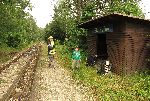 V cílové zastávce Skříněřov. Mělo chcát, tak jsem vymyslel, že pojedeme posledním vlakem a doufal, že budka bude k přespání. Sic teď neprší, ale přespíme tu. A udělali jsme dobře, páč přes noc bouřilo a chcalo.