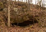 Vchod do Buškovy jeskyně kdesi hore ve skále