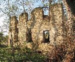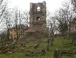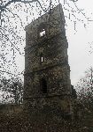 Zbytky zřícené zvonice na Mukařovském hřbitově