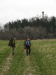 Cestou od Byňova hore k rozcestí Fráže, v dálce za námi kopec Kukla s vysílačem