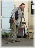 Výroby se ujal Andy s Bedlou za pomoci pilky od Waki. Já jsem se mezi tím sbalil (by člověk nevěřil jak je to najednou komlikovaný) a s pomocí stromu a Bedly se postavil. Na levou nohu samozřejmě. Došloupnout na pravou nohu jak se dalo předpokládat nešlo. Kluci berlu pilkou vyladili do potřebné délky, vrazil jsem ji do podpaží, směrem k ohni zařval "AHÓÓÓÓJJJJJ" a hurá na nádraží.